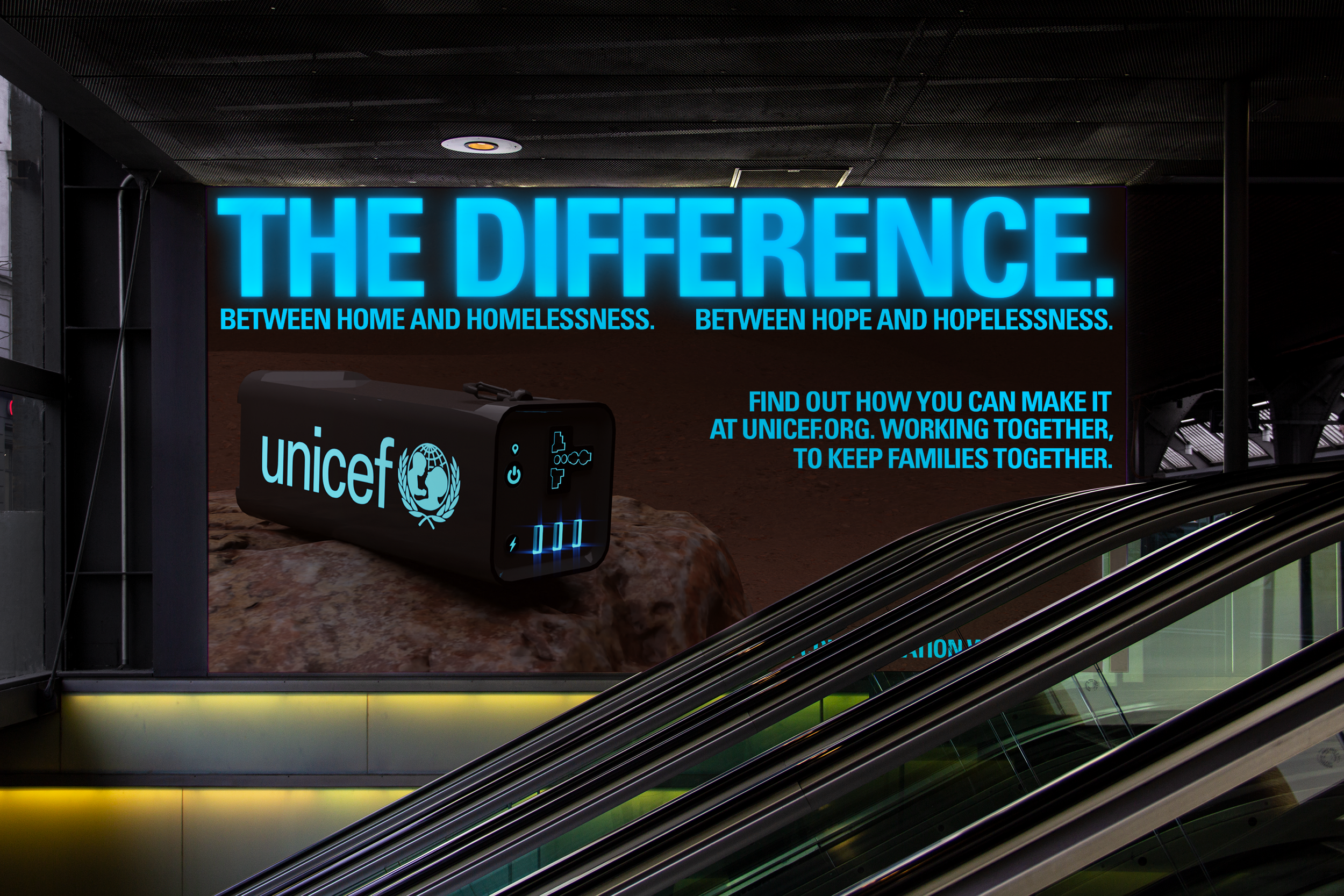 The campaign took shape through billboards in public spaces, attempting to educate the public on how they can they can do their bit, whilst also providing transparency and more details of where exactly the donations are going. In the advertising I opted against unicef’s usual lighter tone of voice using all caps - to refer to the urgency of the mission. From here, I developed a Unicef webpage offering more of the finer details of the campaign. Finally, to a deeper sense of connection and engagement to users a further webpage is available to tell donators where their donation went, how much eco friendly electricity it produced and how far it has travelled.